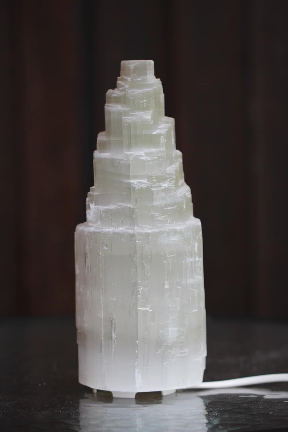 Kvaliteetsest läbipaistva struktuuriga seleniidi toorkivist tahutud torn (kõrgus 25cm), mille põhja puuritud avausse on paigutatud valgusallikas. Valgus võimendab seleniidi metafüüsilisi omadusi ja loob valgusküllase ning müstilise meeleolu igas ruumis.