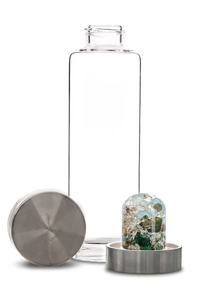 VitaJuwel ViA on Sinu abiline, et võtta kristallivesi kaasa kuhuiganes Sa lähed. Vahetatav klaasist kristallide kassett on eemaldatav klaasist pudeli põhjast lihtsalt käega keerates. Pudeli puhastamine on väga lihtne – lihtsalt keera kork ja põhjas olev kristallikassett ära ning loputa kõiki osasid veega. VitaJuwel ViA on valmistatud pliivabast klaasist ja mahutab 500 ml.