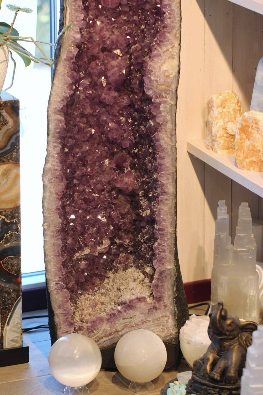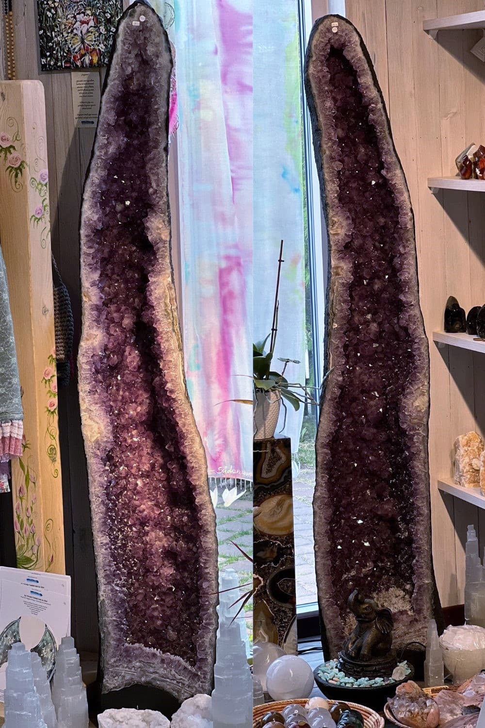 Esteetika ja kodukaunistus: Lisaks metafüüsilistele omadustele on ametüsti geoodid visuaalselt vapustavad ja võivad igale ruumile lisada loomuliku ilu. Geoodi paaril on tavaliselt kare välispind koos õõnsa õõnsusega, mis on vooderdatud sädelevate ametüstikristallidega. Nad on suurepäraseid dekoratiivesemeid, pakkudes ruumis kütkestavat fookuspunkti.