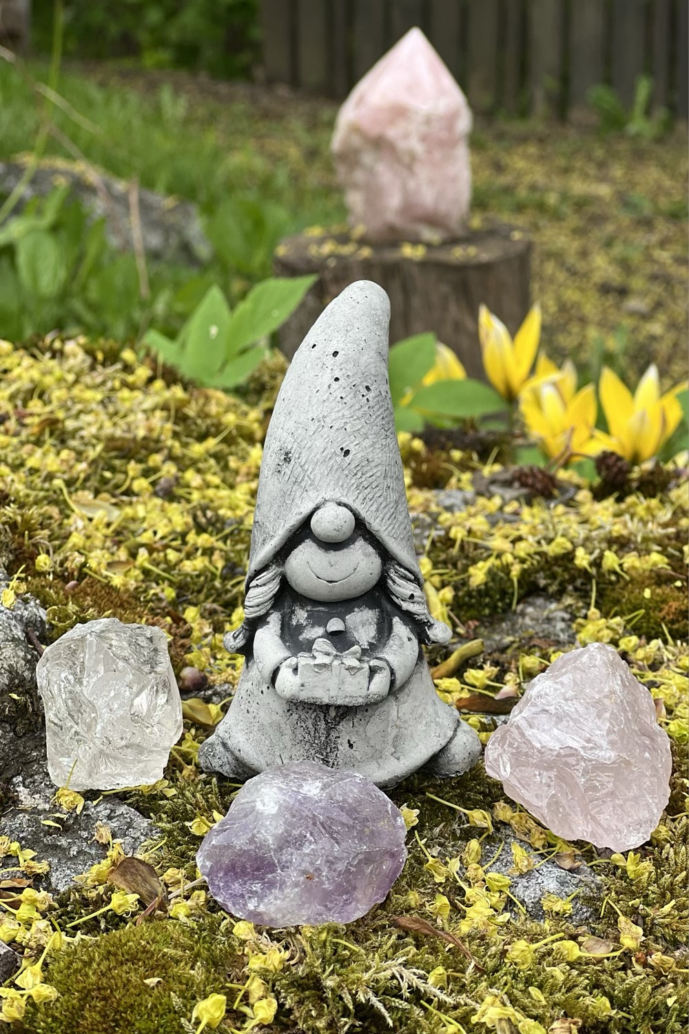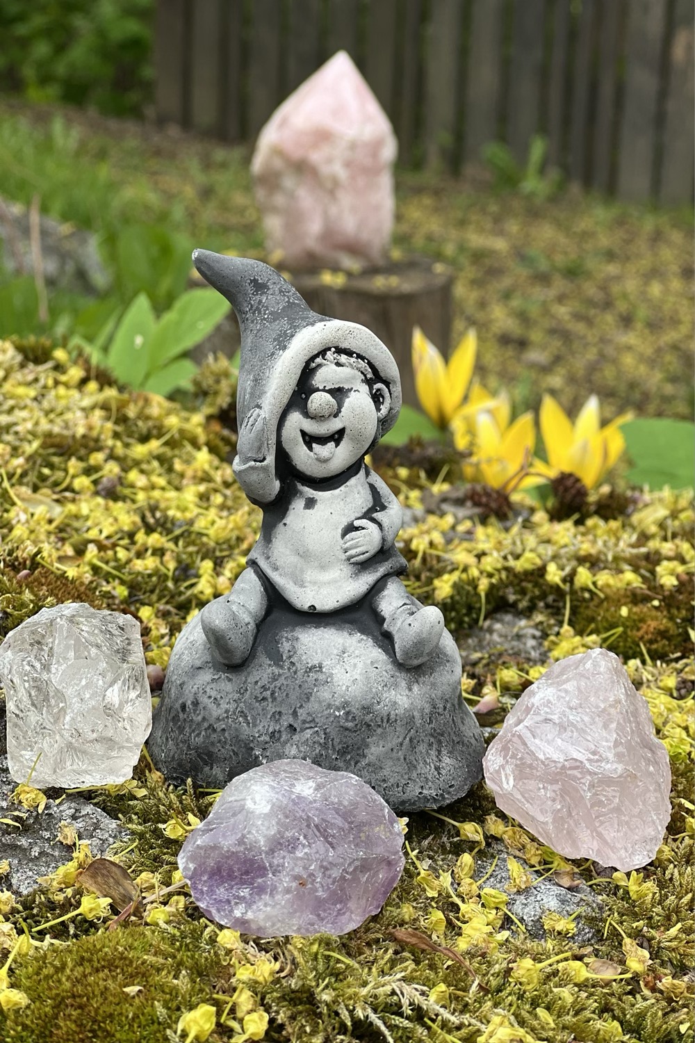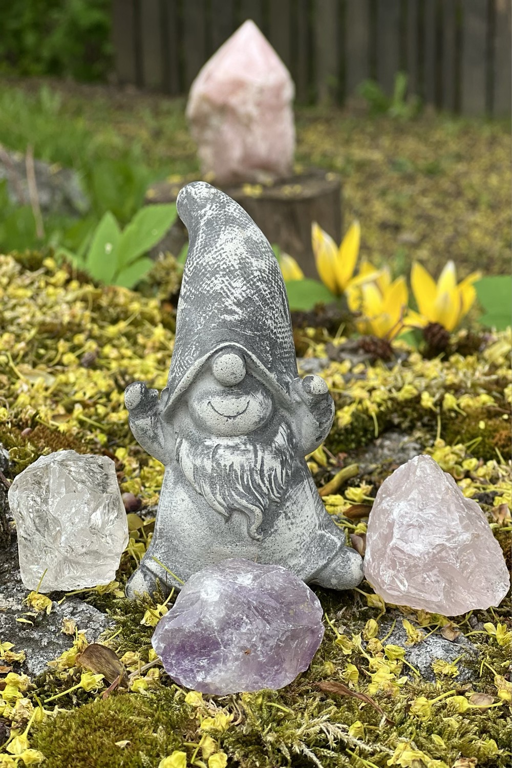 Meie gnoomiperekonnas on 4 liiget – vanake, rõõmurull, varahoidja ja vigurvänt – kõikidel on gnoomidel on kaasas ametüsti, mäekristalli ja roosa kvartsi toorkivi komplekt.