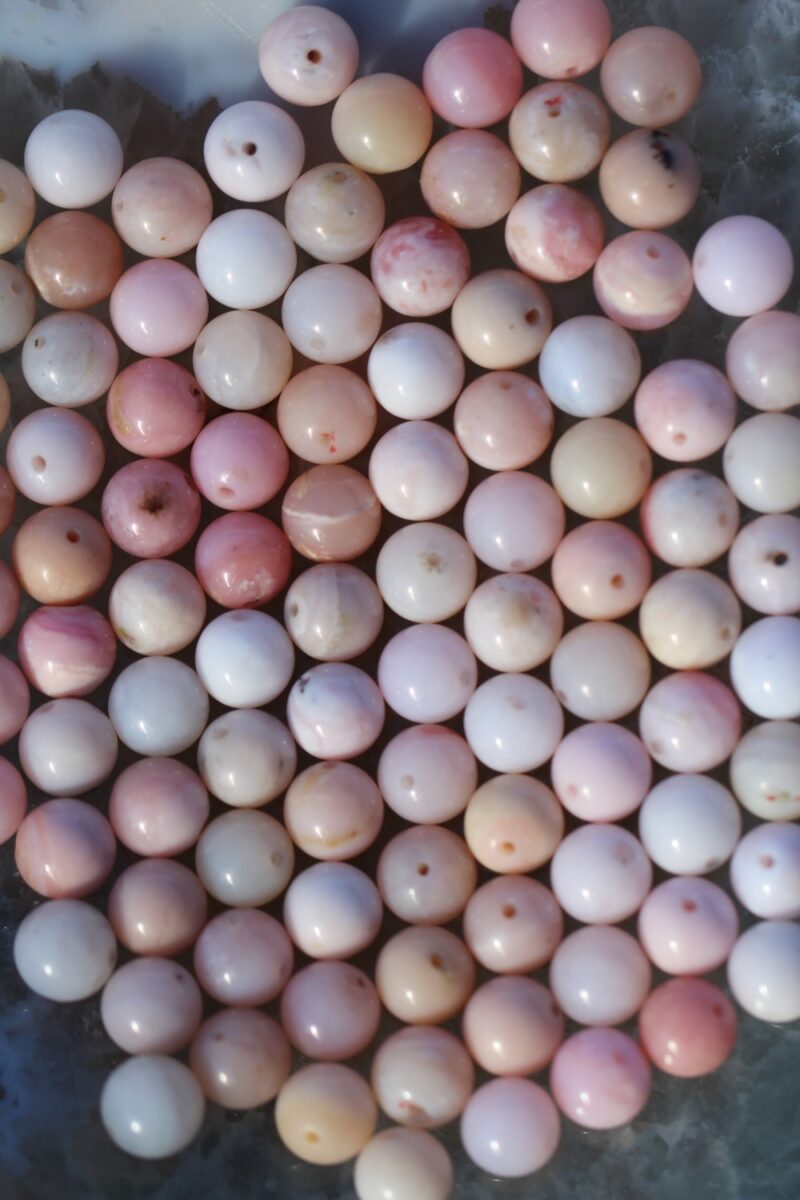 Mitmekesiste roosa varjundite ja toonidega looduslikud roosa opaali auguga helmed, mis on sobilikud ehete (käe- ja kaelakeed) valmistamiseks.