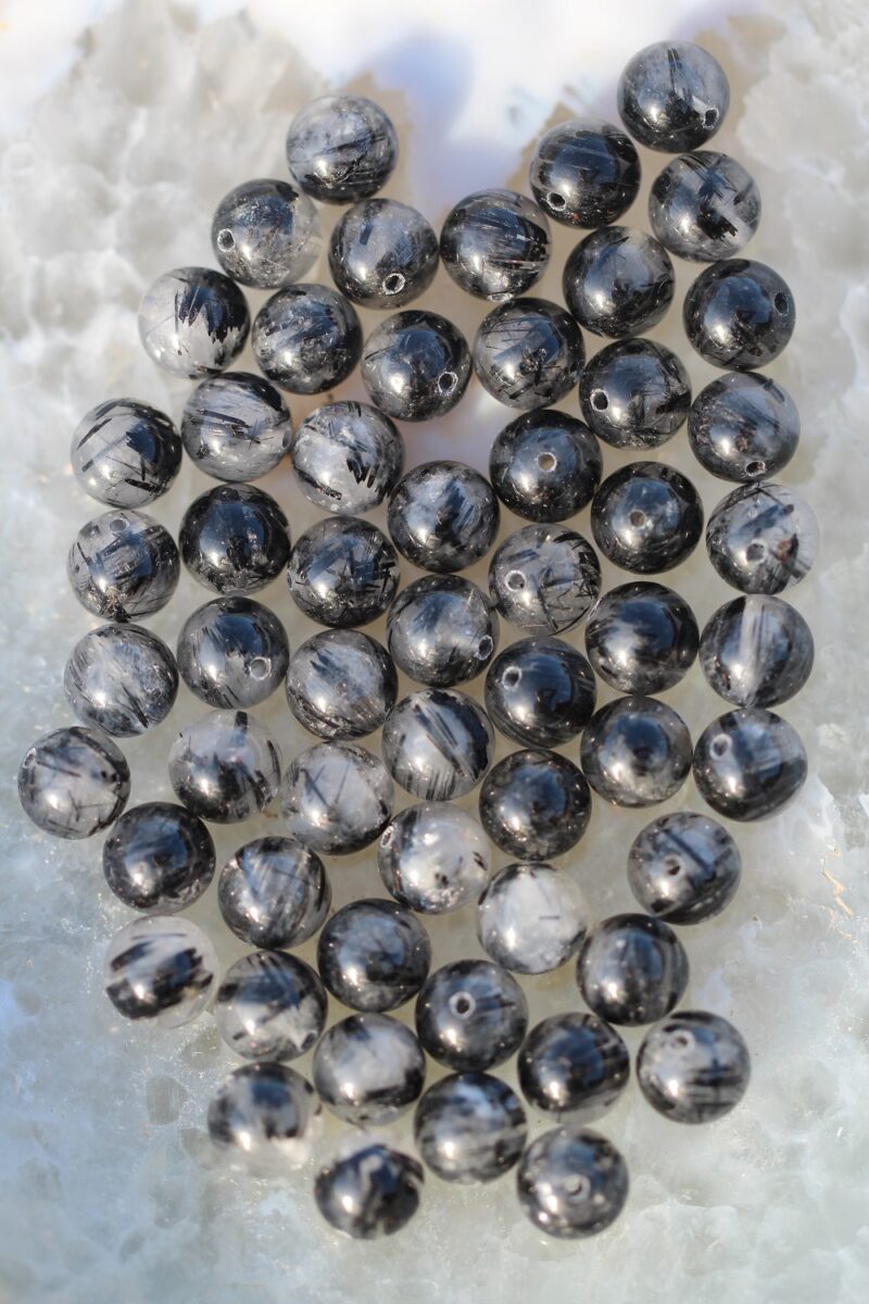 Kaks kristalli – turmaliin ja mäekristall – ühes loob võimsa sünergia. Maagiliselt eripärase turmaliini niidistikuga turmaliinkvartsi auguga helmed, mis on sobilikud ehete (käe- ja kaelakeed) valmistamiseks.