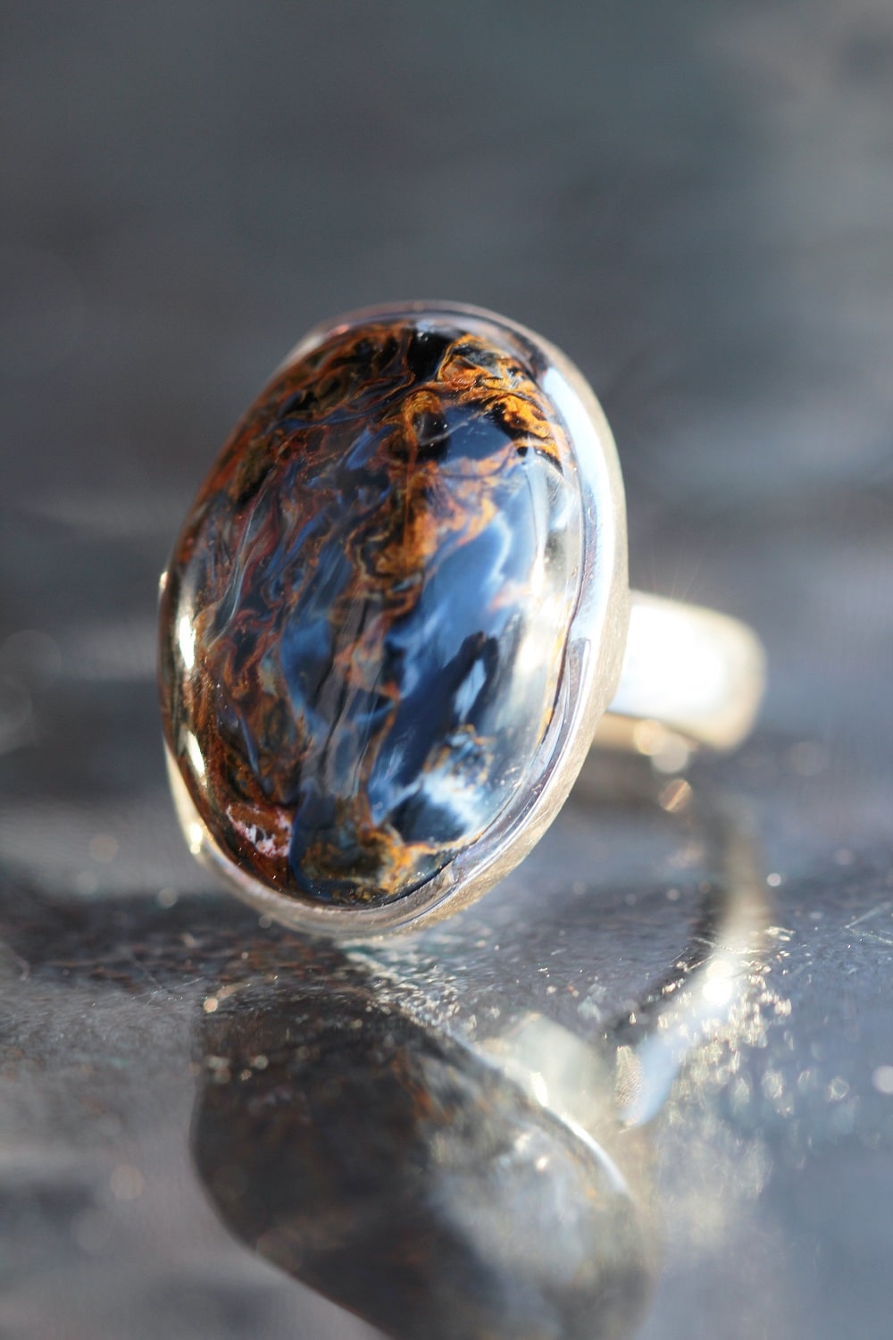 Selle sõrmuse kristall on pietersiit – aitab jõuda iseenda tõeni ja oma olemuseni.