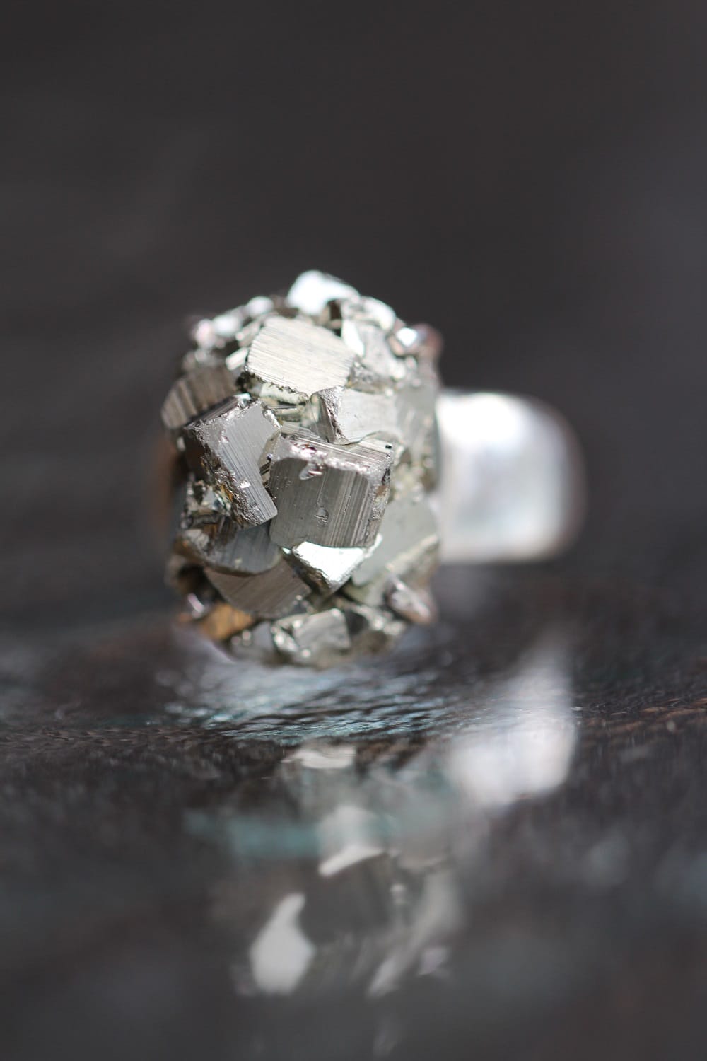 Selle sõrmuse kristall on püriit – julguse, enesekindluse ja küllusliku tegutsemise toetaja.
