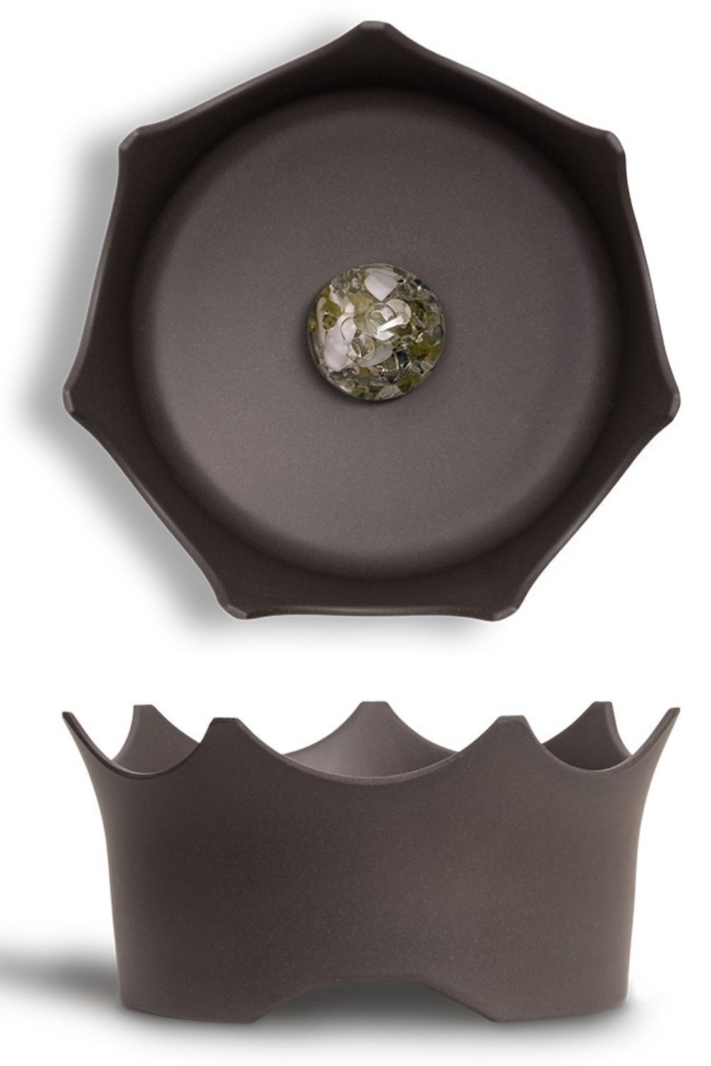 VitaJuwel on koos veterinaaride ja vääriskiviekspertidega peaaegu kaks aastat uurinud kassidele ja koertele sobivat kristallisegu. Meie eesmärk on suurendada lemmikloomade üldist heaolu, suurendada nende elujõudu ja tõsta entusiasmi elava vee vastu. CrownJuweli jaoks materjalide valimisel keskendusime eelkõige jätkusuutlikkusele ja vastupidavusele. Tugeva ja hammustuskindla kausi põhikomponent on bambus. Puhas kemikaalivaba kristallianum on täidetud nefriidi, ahhaadi, mäekristalli, peridoodi ja mangaankaltsiidiga.