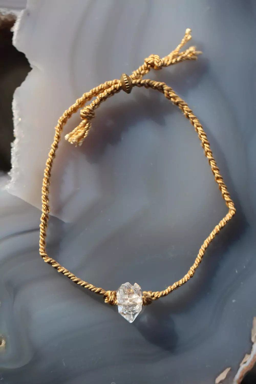 Herkimeri teemant on punutud siidist niidile, mis muudab kee minimalistlikuks ja mugavaks.