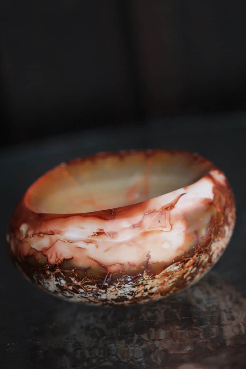 Looduslikust karneoolist tahutud (poleeritud) väiksed kausikesed, mis sobivad ehete ja teiste kristallide hoidmiseks ja laadimiseks, vee hoidmiseks altaril jpm. Klikka kaalule ja näed täpsemaid mõõtmeid ja pilte.
