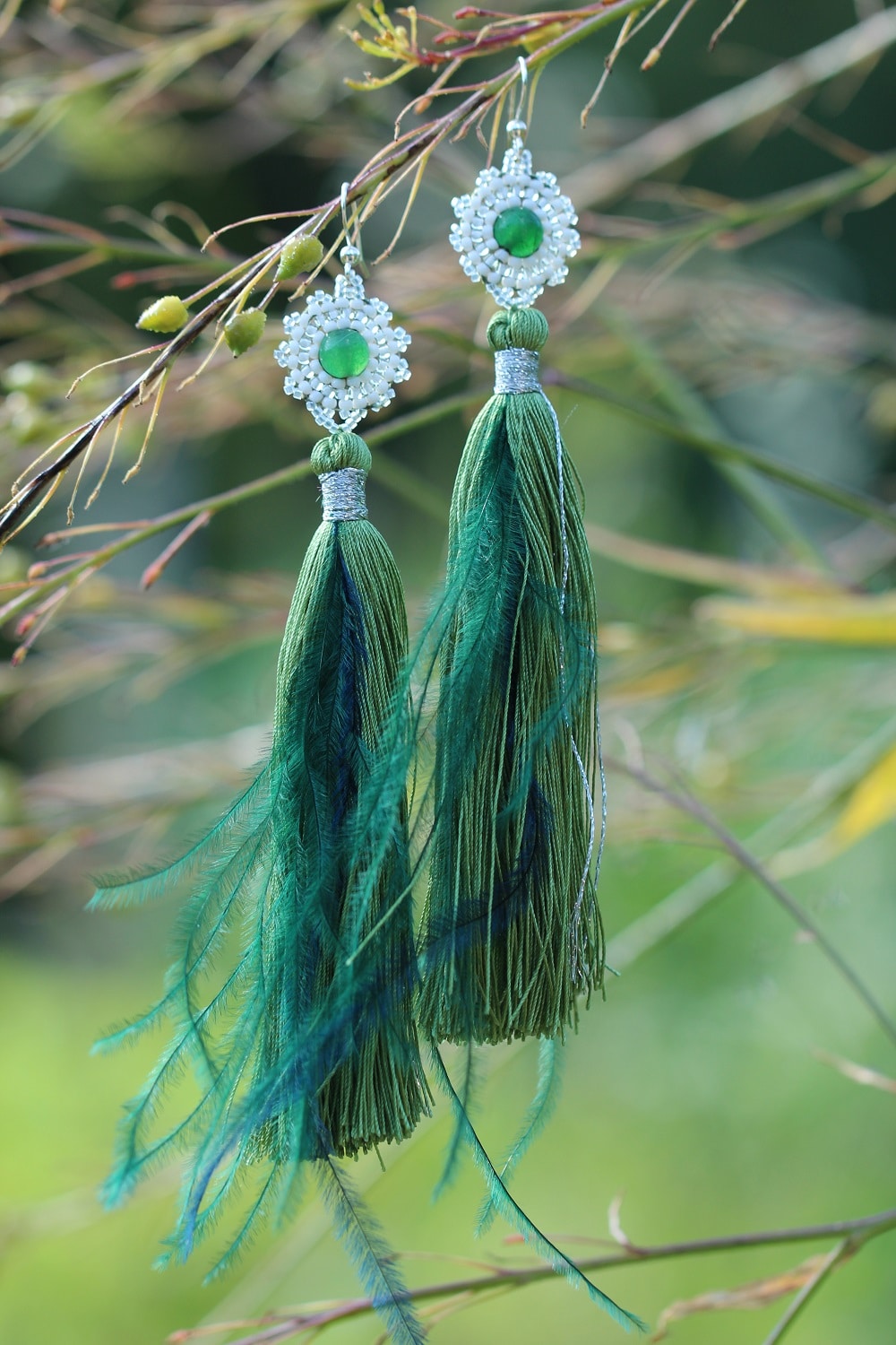 Leie lisas omalt poolt siidi, sulgi, kristalle ja sidus kõrvaehted tervikuks.
