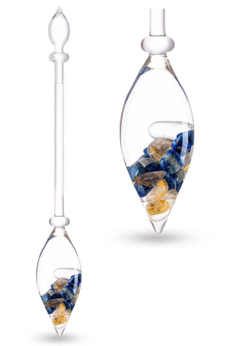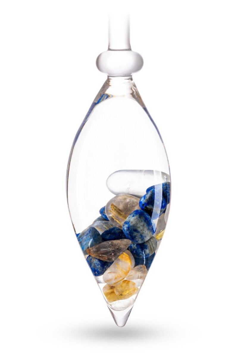 Muutke oma loovusega maailma ja tooge ellu uued ideed! Saage inspiratsiooni sellest, kui naudite klaasi kristallvett sellest rutiilkvartsi ja sügava taevasinise lapis lazuli lummavast kombinatsioonist, mis oli umbes 6000 aastat tagasi Vana-Egiptuse vaimsuse sümboliks. Väidetavalt kaunis kuldse triibuga rutiil annab energiat ja parandab teadlikkust. Teie aju koosneb umbes 75% -st vedelikust. Uuringud on näidanud, et janu tundes vee joomine suurendab meie aju jõudlust. Toidke oma aju jõudlust iga päev selle väga erilise kristalleliksiiri seguga.