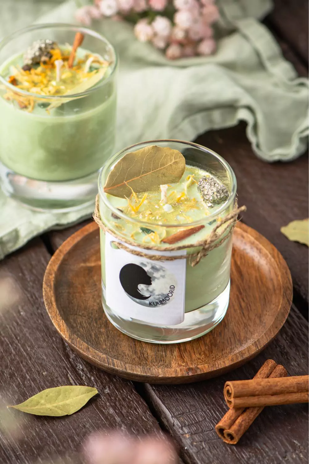 Lõhnaküünla säravroheline toon on inspireeritud kõikeandvast emakesest loodusest, kel küllusest ja heldusest iial puudu ei ole.