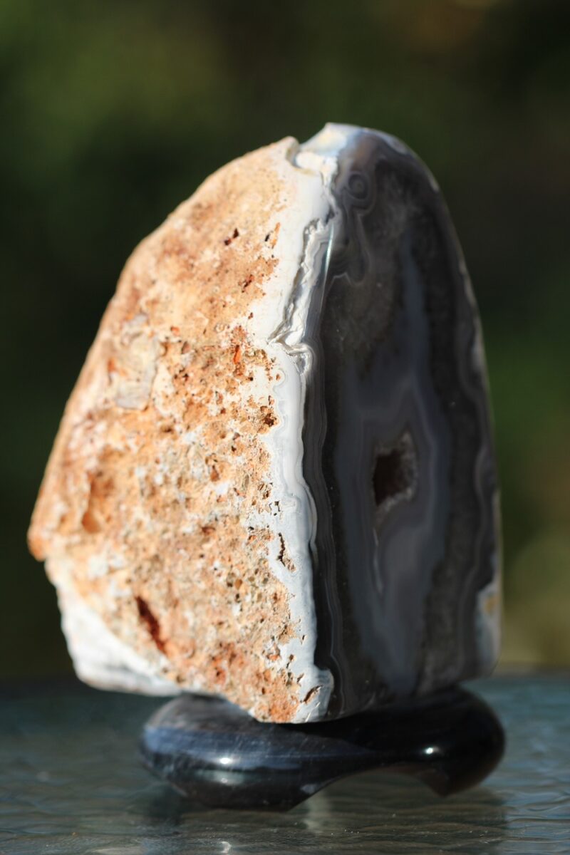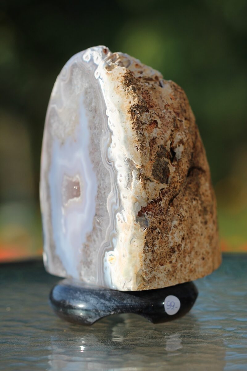 Naturaalsest ahhaadi toorkivist tahutud lamp, mille kaks serva on loodusliku struktuuriga ja esikülg koos servadega on poleeritud. Valgus võimendab ahhaadi metafüüsilisi omadusi ja loob valgusküllase ning müstilise meeleolu igas ruumis.