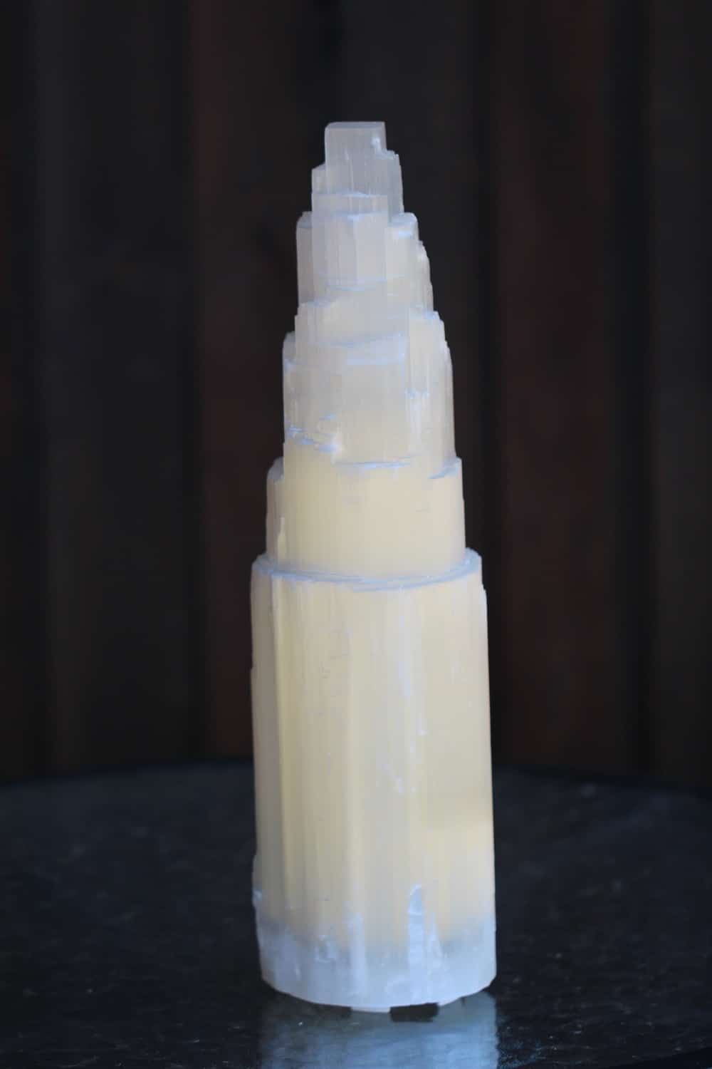 Kvaliteetsest läbipaistva struktuuriga seleniidi toorkivist tahutud torn (kõrgus 40cm), mille põhja puuritud avausse on paigutatud valgusallikas. Valgus võimendab seleniidi metafüüsilisi omadusi ja loob valgusküllase ning müstilise meeleolu igas ruumis.