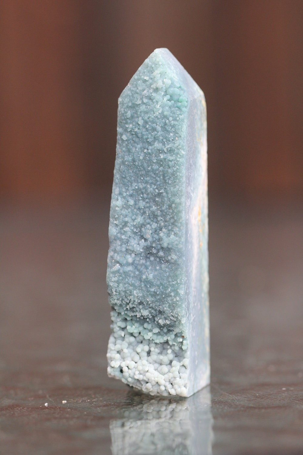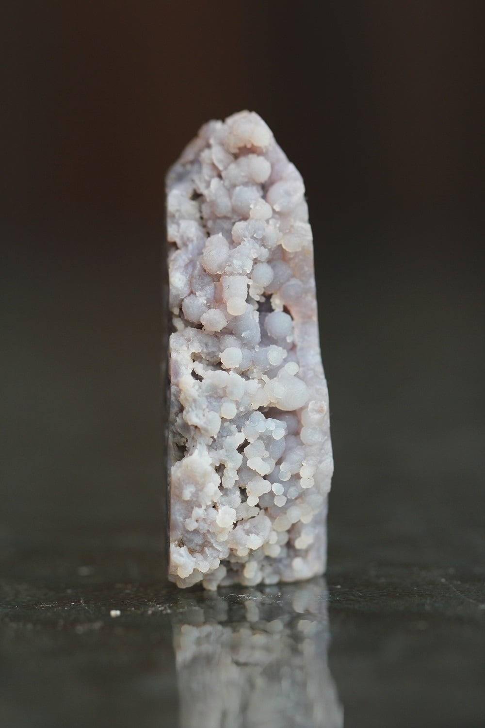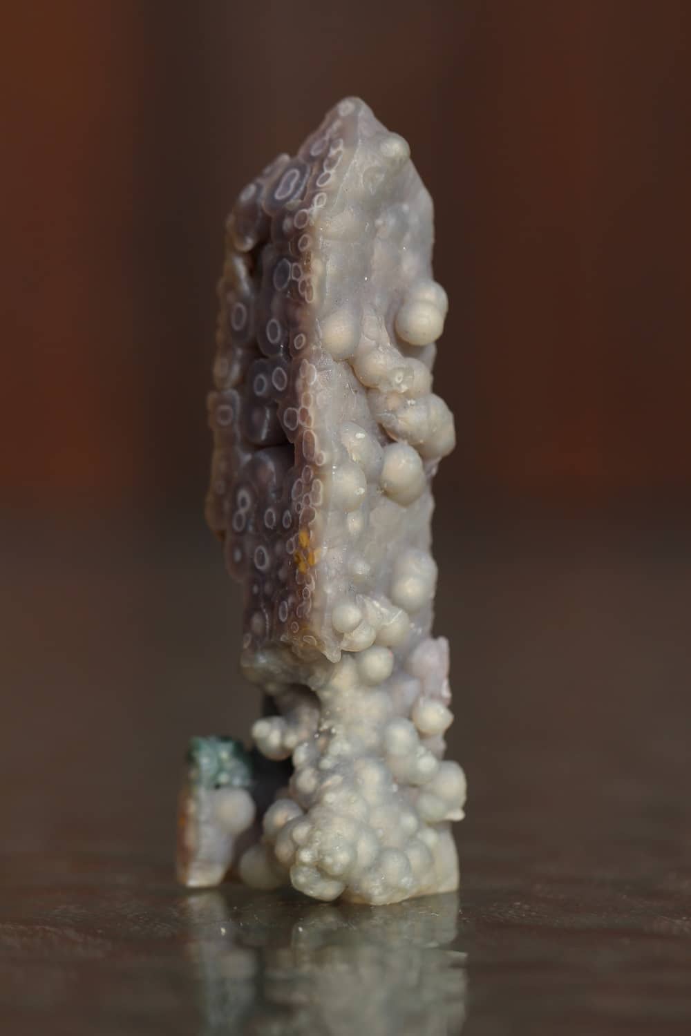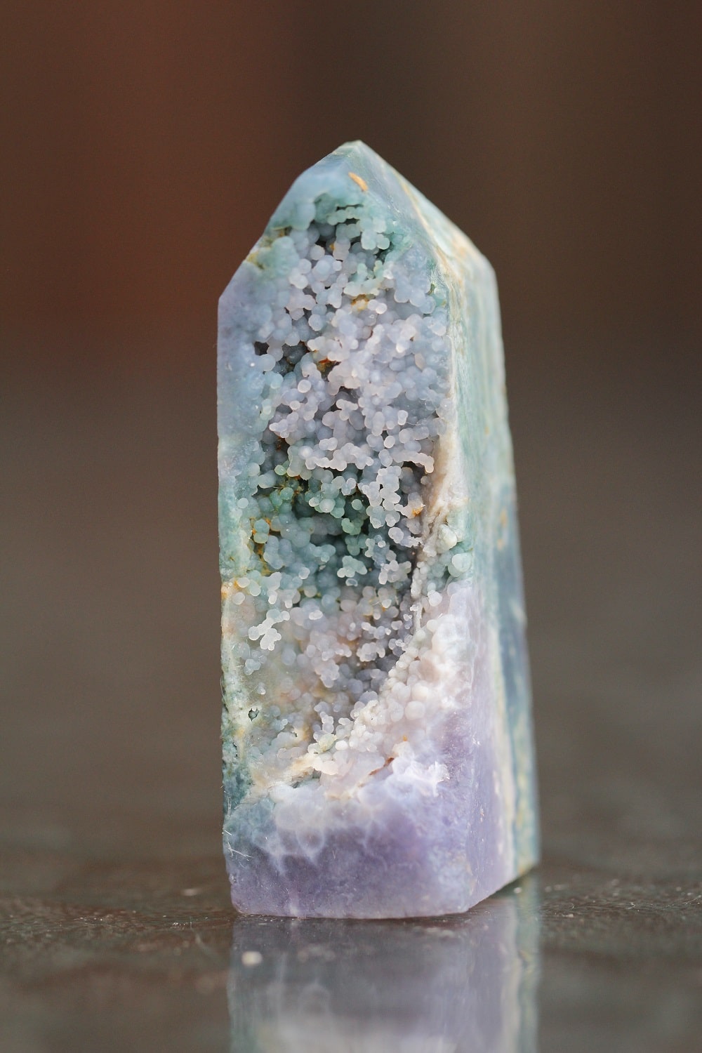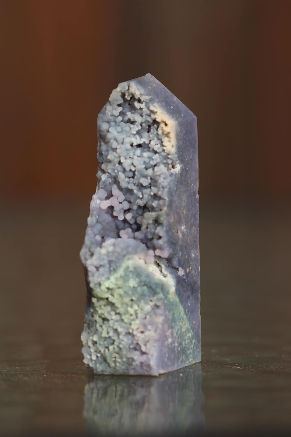 Looduslikust viinamarja ahhaadist (grape agate) tahutud obelisk sobib ruumi sageduse tõstmiseks ja vaimse maailmaga kontakti harmoniseerimiseks. Obeliskid on nelja tahuga, millest kolm on lõigatud ja mati viimstlusega (mitte lihvitud). Esimene külg on naturaalne viinamarja ahhaadi geood.