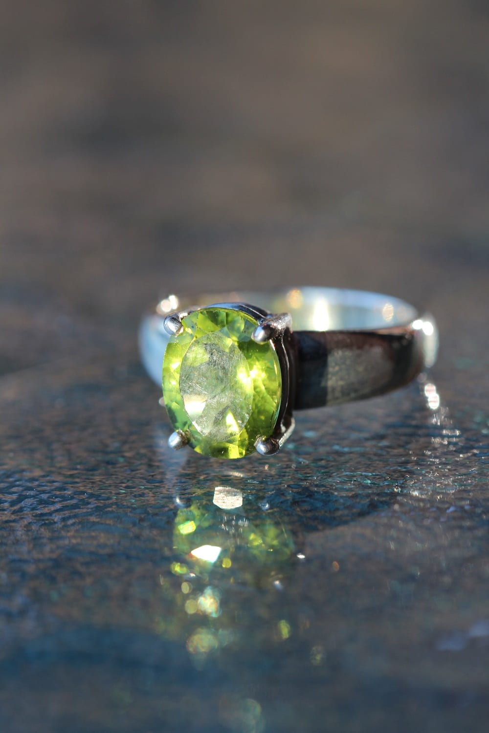 Selle sõrmuse kristall on peridoot – südame tarkuse, tervenduse ja ja puhastumise toetaja.