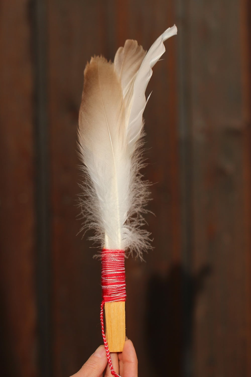 Kaal - Mõõtmed - Koostis Eesti luige suled 3-5tk komplektis, palo santo puu, puuvillane lõng