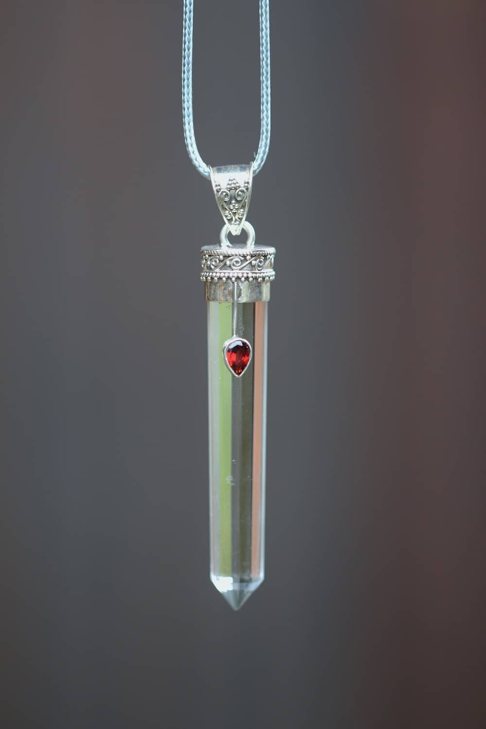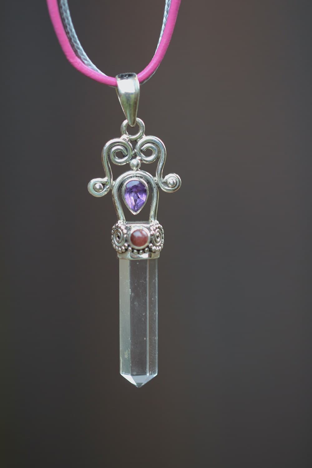 Hõbedases raamis mäekristall, mis on lihvitud 12-tahuliseks teravatipuliseks vorteksiks. Ripatsi krooniks on erinevatel variantidel granaat ja ametüst.