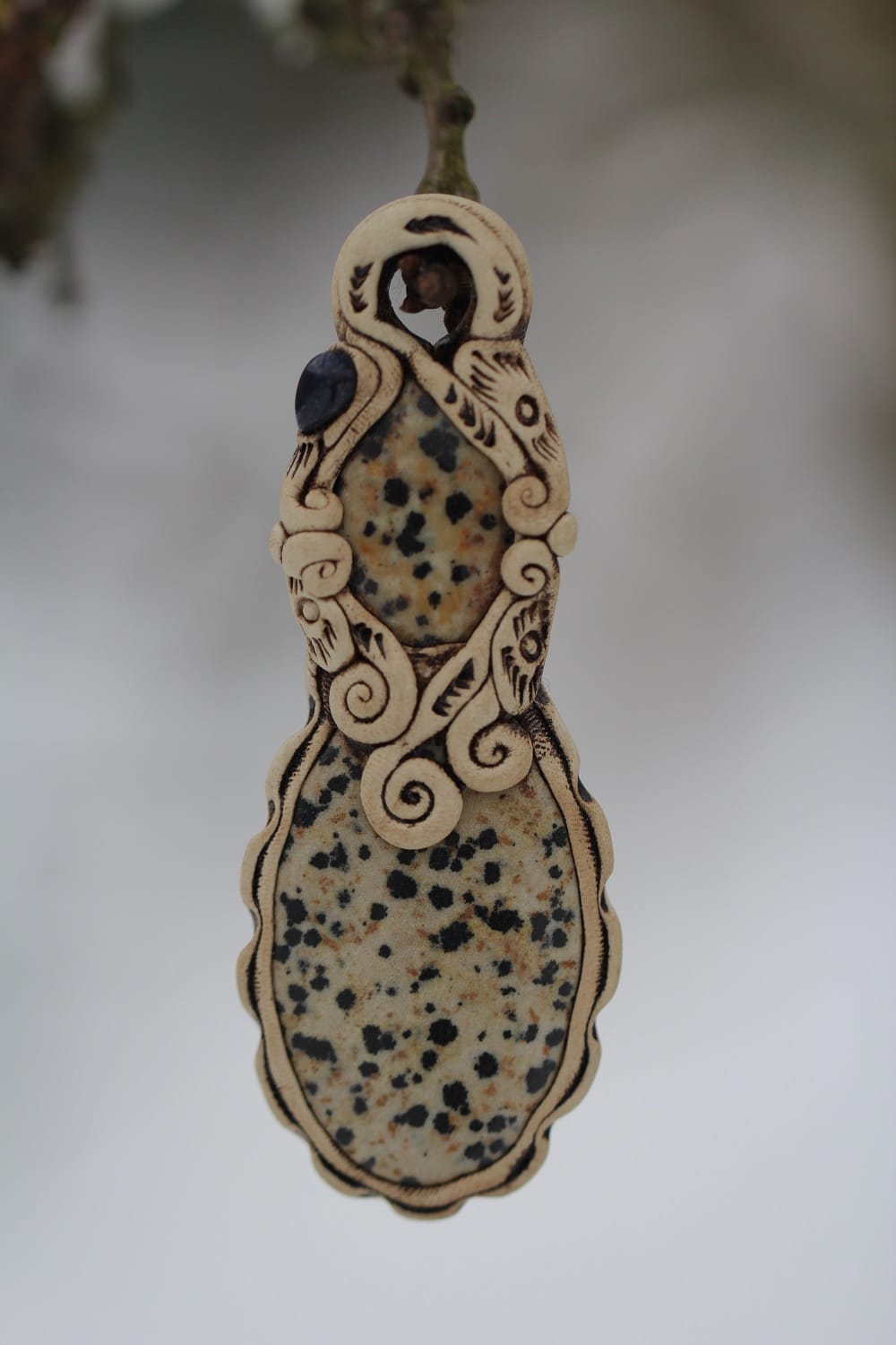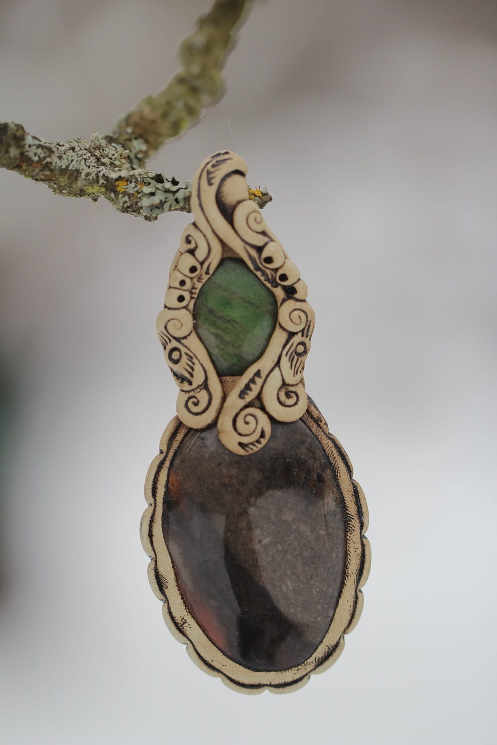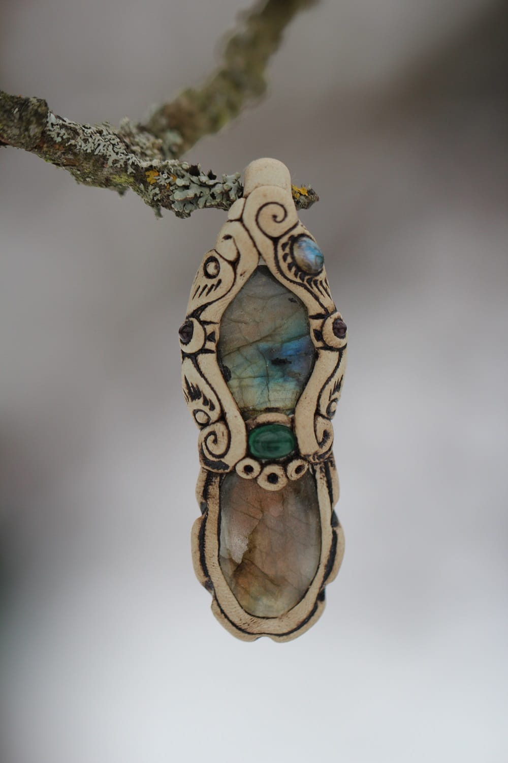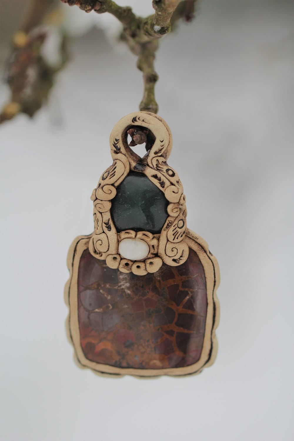 Need käsitööna meisterdatud ripatsid on raamitud ja kujundatud polümeersavist ning seob kristalli ja savi ühtseks terviklikuks ehteks.
