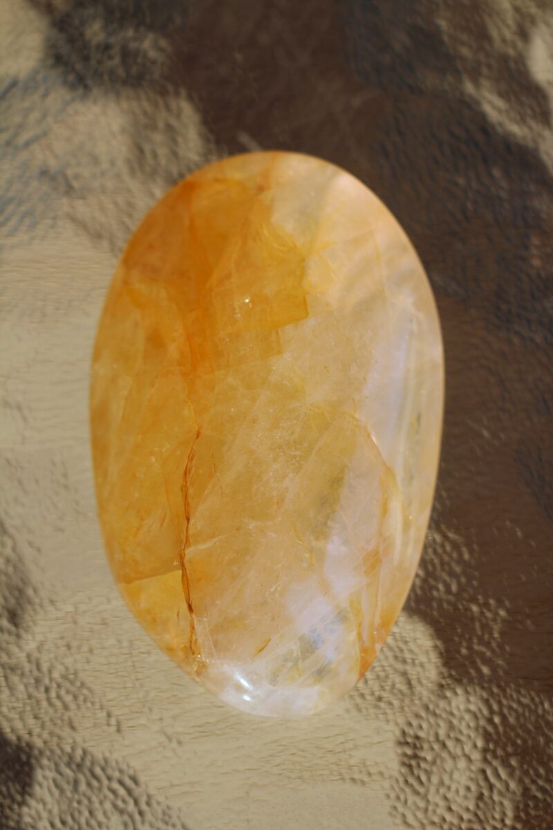 Poleeritud raudkvartsi teraapiakivi on päikesepõimikut ja seedetuld toetav mineraal.