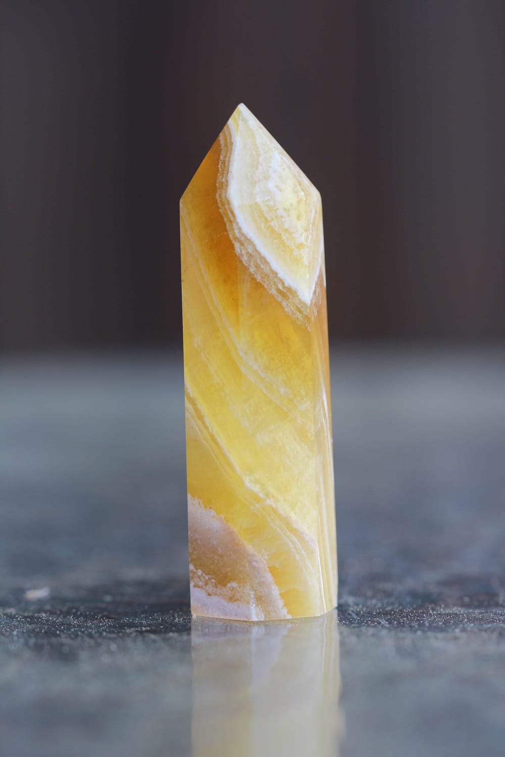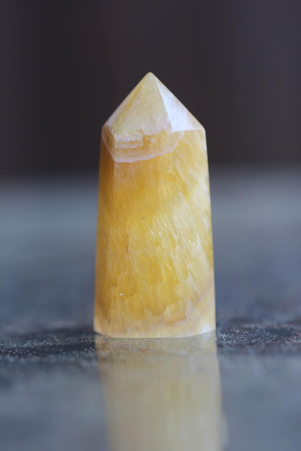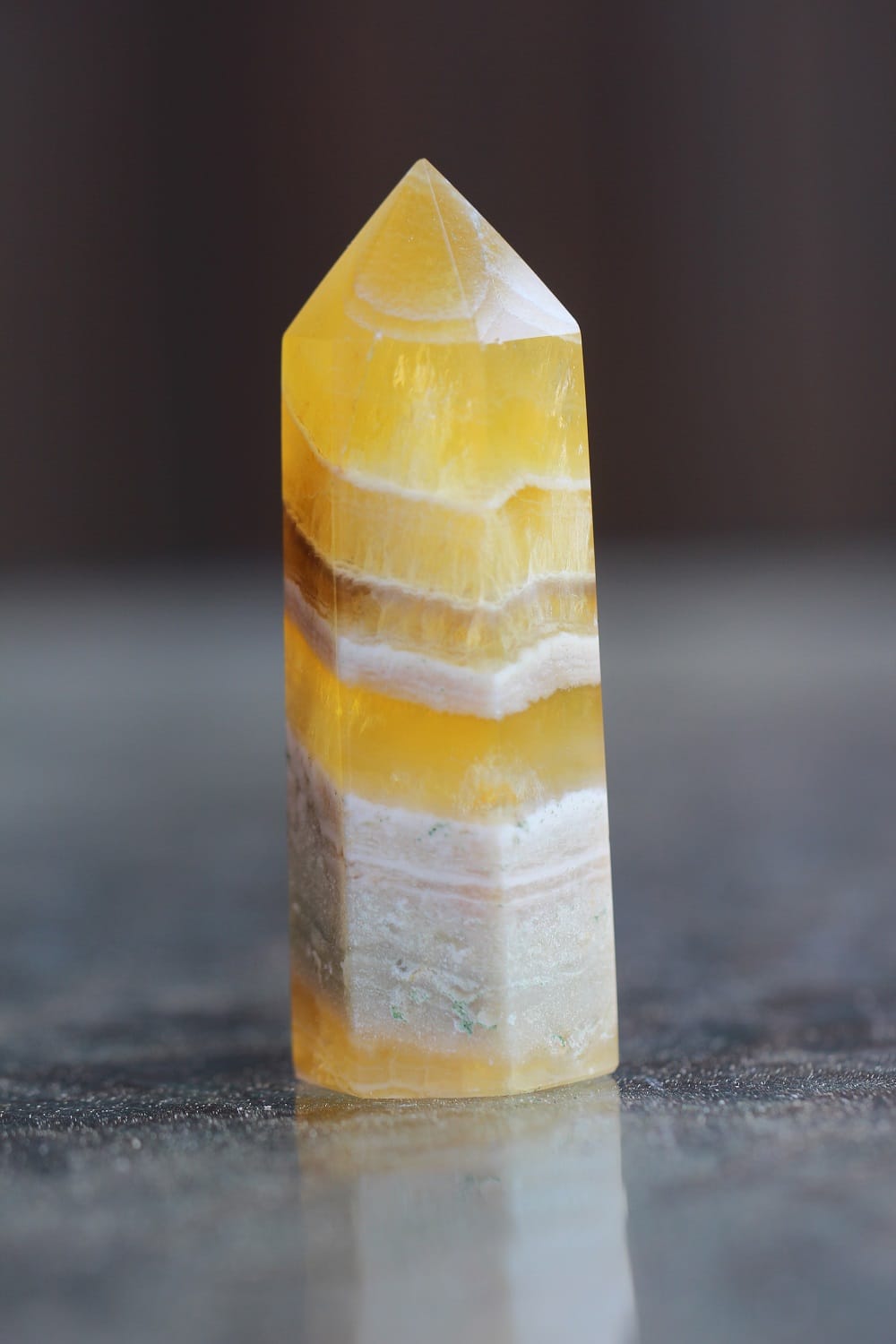 Kollase fluoriidi poleeritud tipud on maagilise mustri ja sisemise struktuuriga.