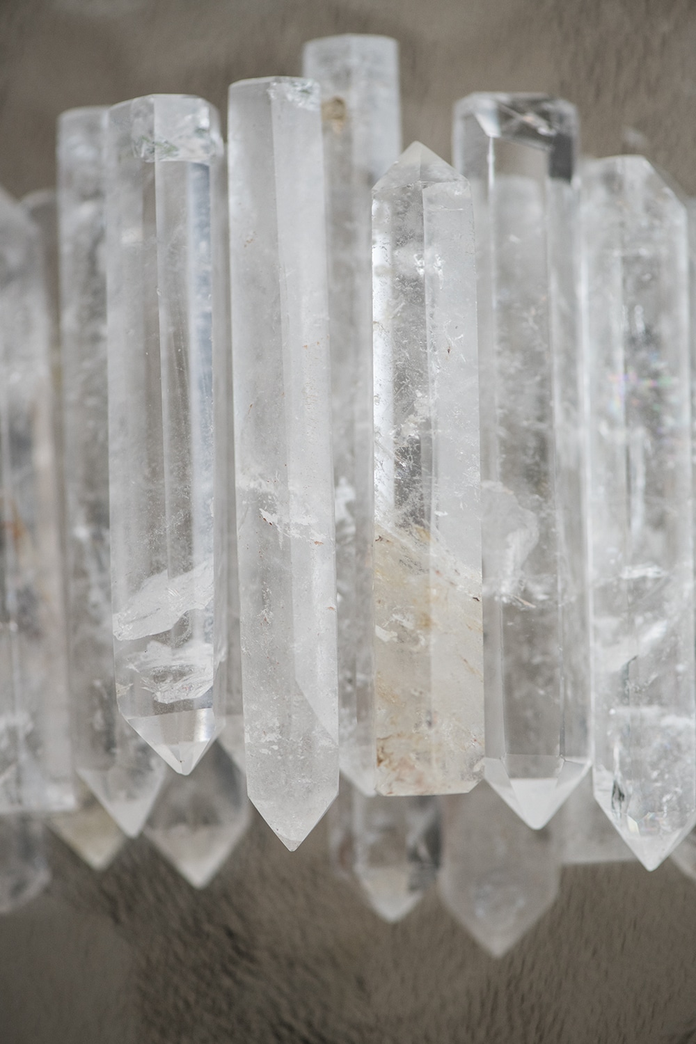 Poleeritud loodusliku mäekristalli ühepoolsed tipud loomupärase struktuuriga. Sobivad töövahendid tervendamiseks ja mandalate ning energiavõrgustike loomiseks.