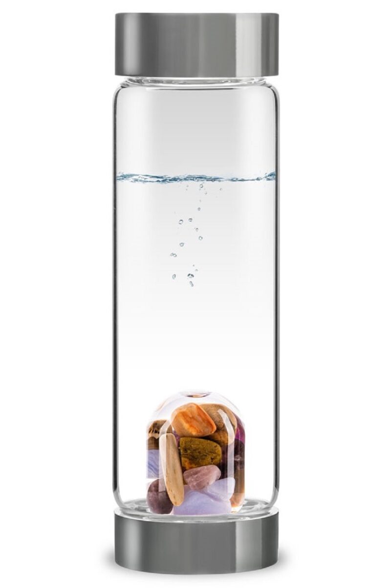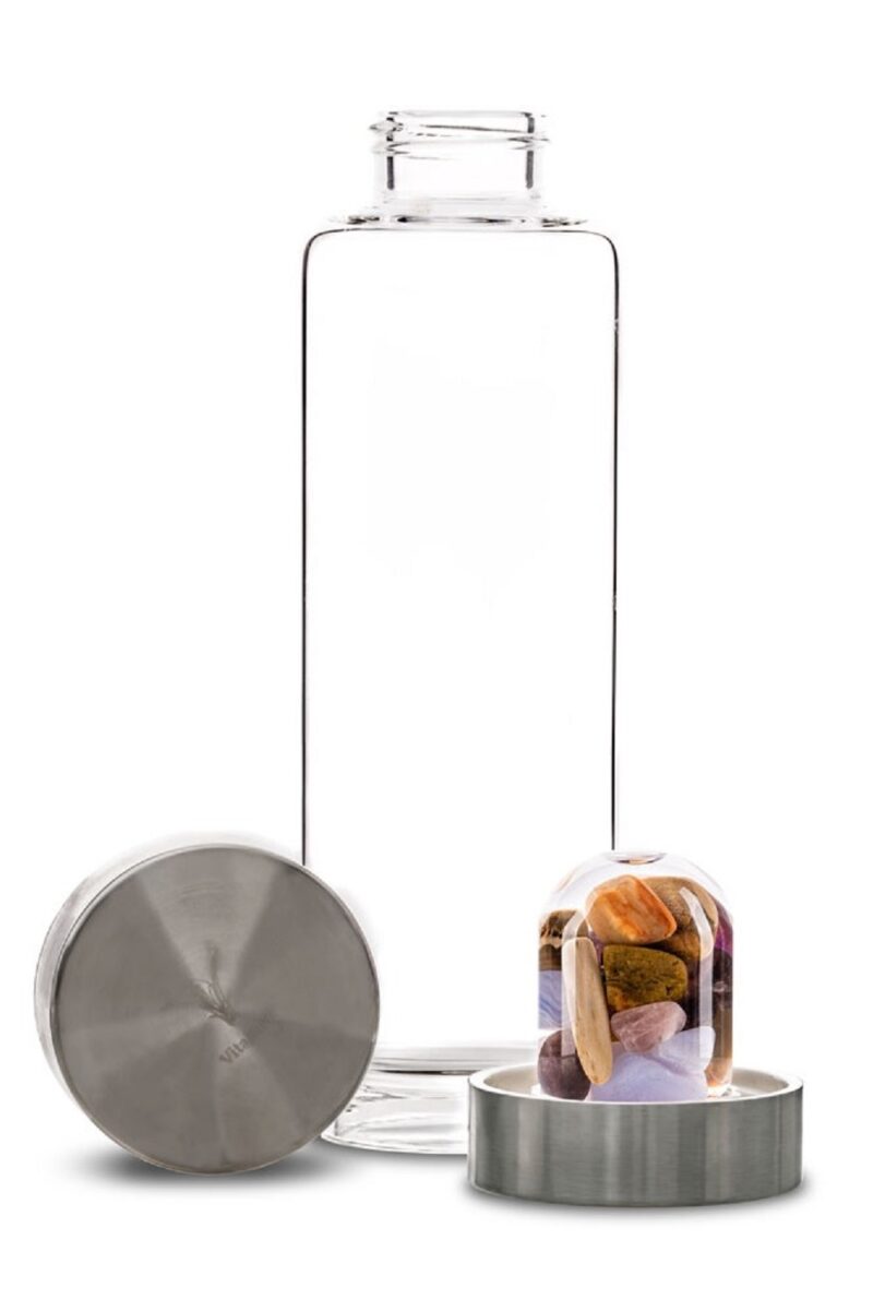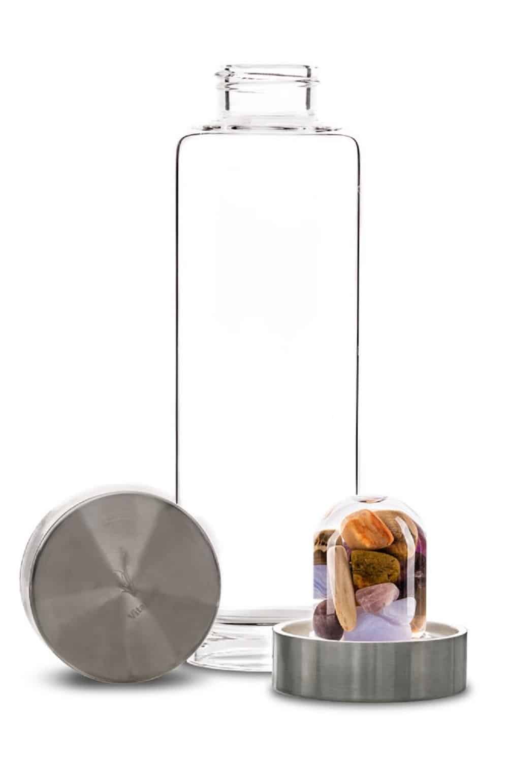 VitaJuwel ViA on Sinu abiline, et võtta kristallivesi kaasa kuhuiganes Sa lähed. Vahetatav klaasist kristallide kassett on eemaldatav klaasist pudeli põhjast lihtsalt käega keerates. Pudeli puhastamine on väga lihtne – lihtsalt keera kork ja põhjas olev kristallikassett ära ning loputa kõiki osasid veega. VitaJuwel ViA on valmistatud pliivabast klaasist ja mahutab 500 ml.