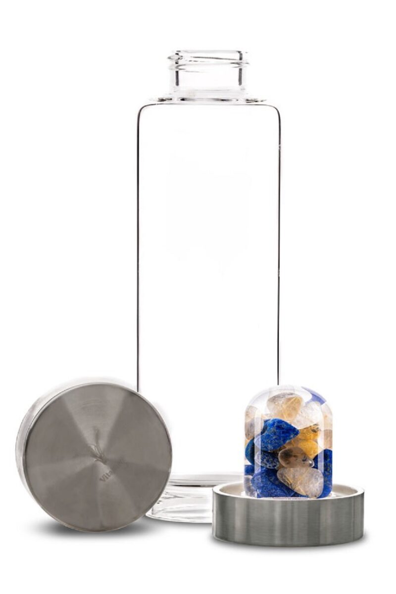 VitaJuwel ViA on Sinu abiline, et võtta kristallivesi kaasa kuhuiganes Sa lähed. Vahetatav klaasist kristallide kassett on eemaldatav klaasist pudeli põhjast lihtsalt käega keerates. Pudeli puhastamine on väga lihtne – lihtsalt keera kork ja põhjas olev kristallikassett ära ning loputa kõiki osasid veega. VitaJuwel ViA on valmistatud pliivabast klaasist ja mahutab 500 ml.