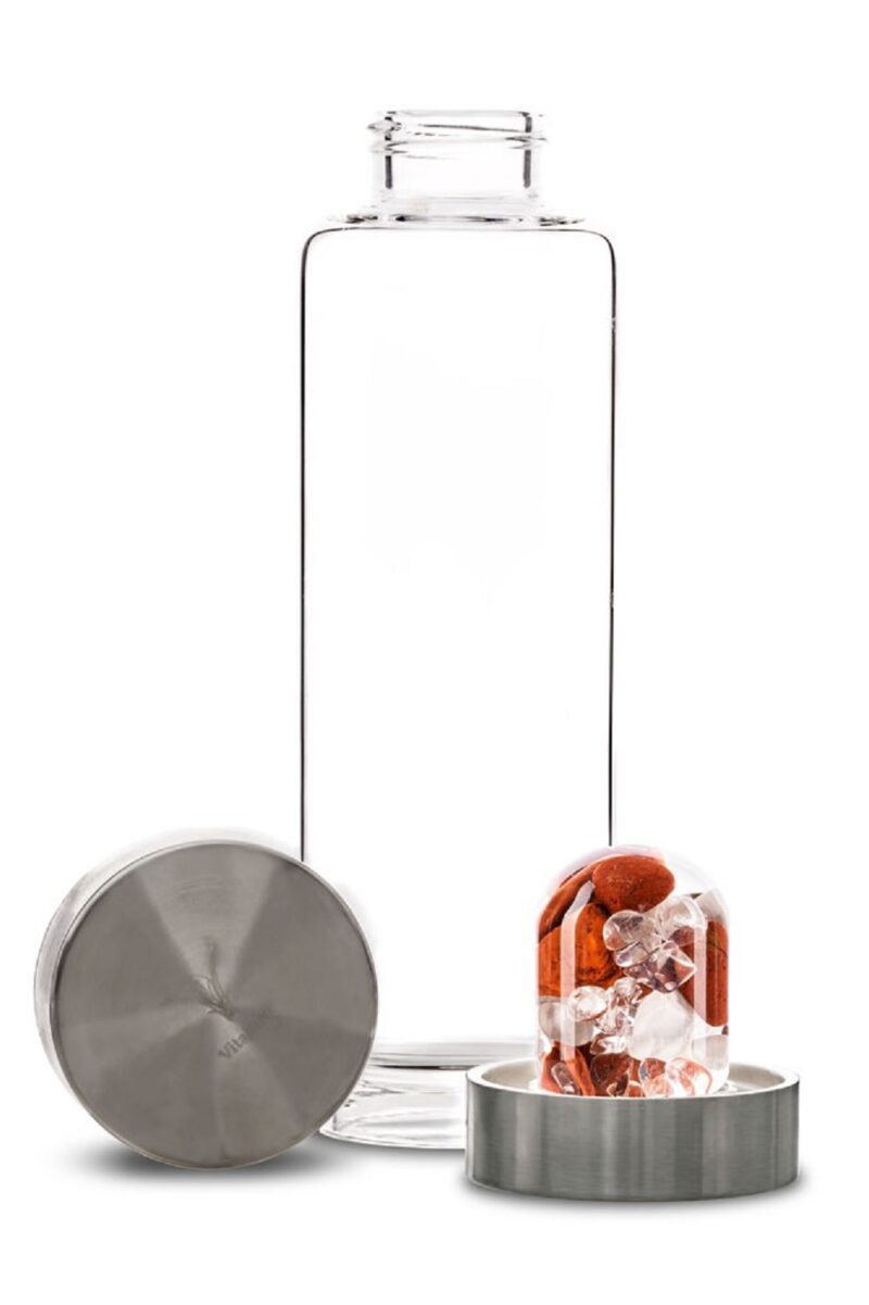 VitaJuwel ViA on Sinu abiline, et võtta kristallivesi kaasa kuhuiganes Sa lähed. Vahetatav klaasist kristallide kassett on eemaldatav klaasist pudeli põhjast lihtsalt käega keerates. Pudeli puhastamine on väga lihtne – lihtsalt keera kork ja põhjas olev kristallikassett ära ning loputa kõiki osasid veega. VitaJuwel ViA on valmistatud pliivabast klaasist ja mahutab 500 ml.
