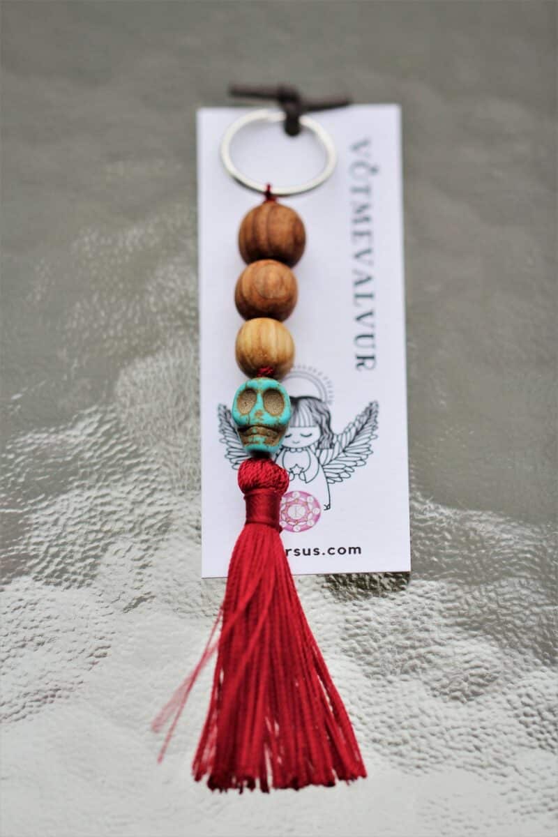 See võtmevalvur on loodud eestimaisest pihlakast ja värvitud hauliidist ning ehitud siiditutiga.