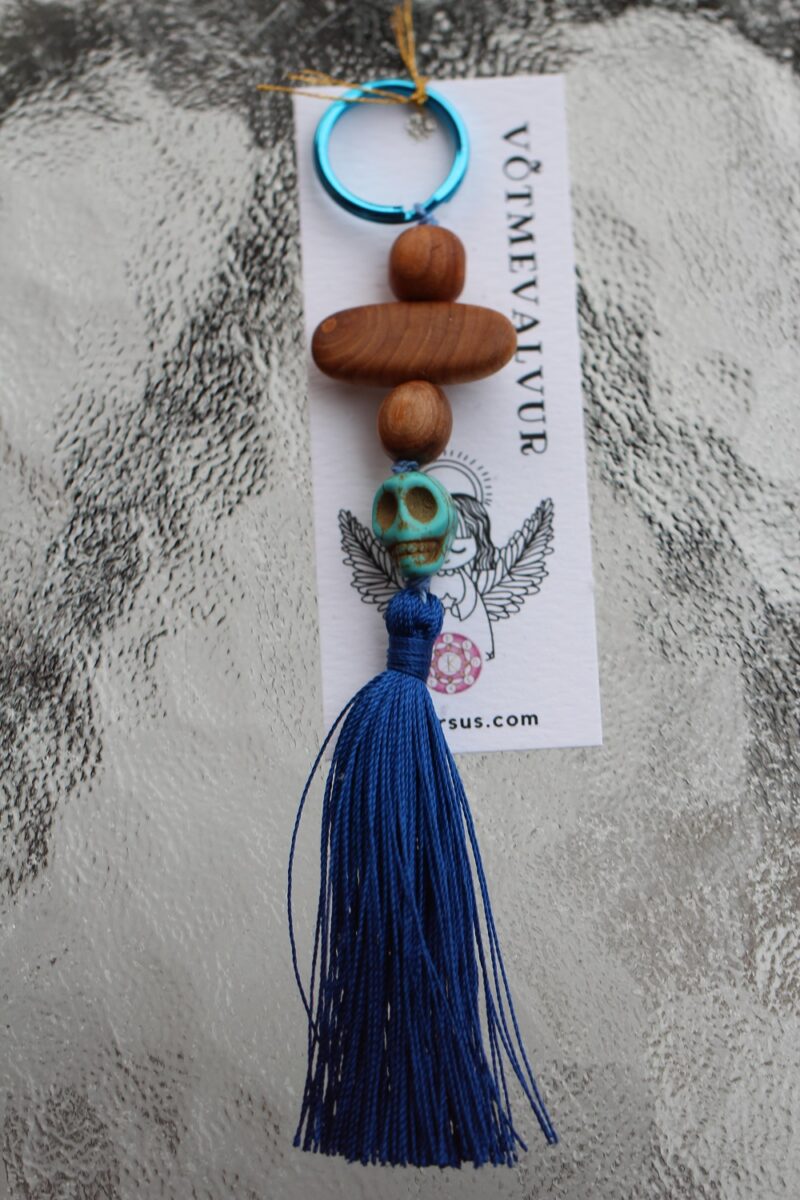 See võtmevalvur on loodud eestimaisest pihlakast ja värvitud hauliidist ning ehitud siiditutiga.